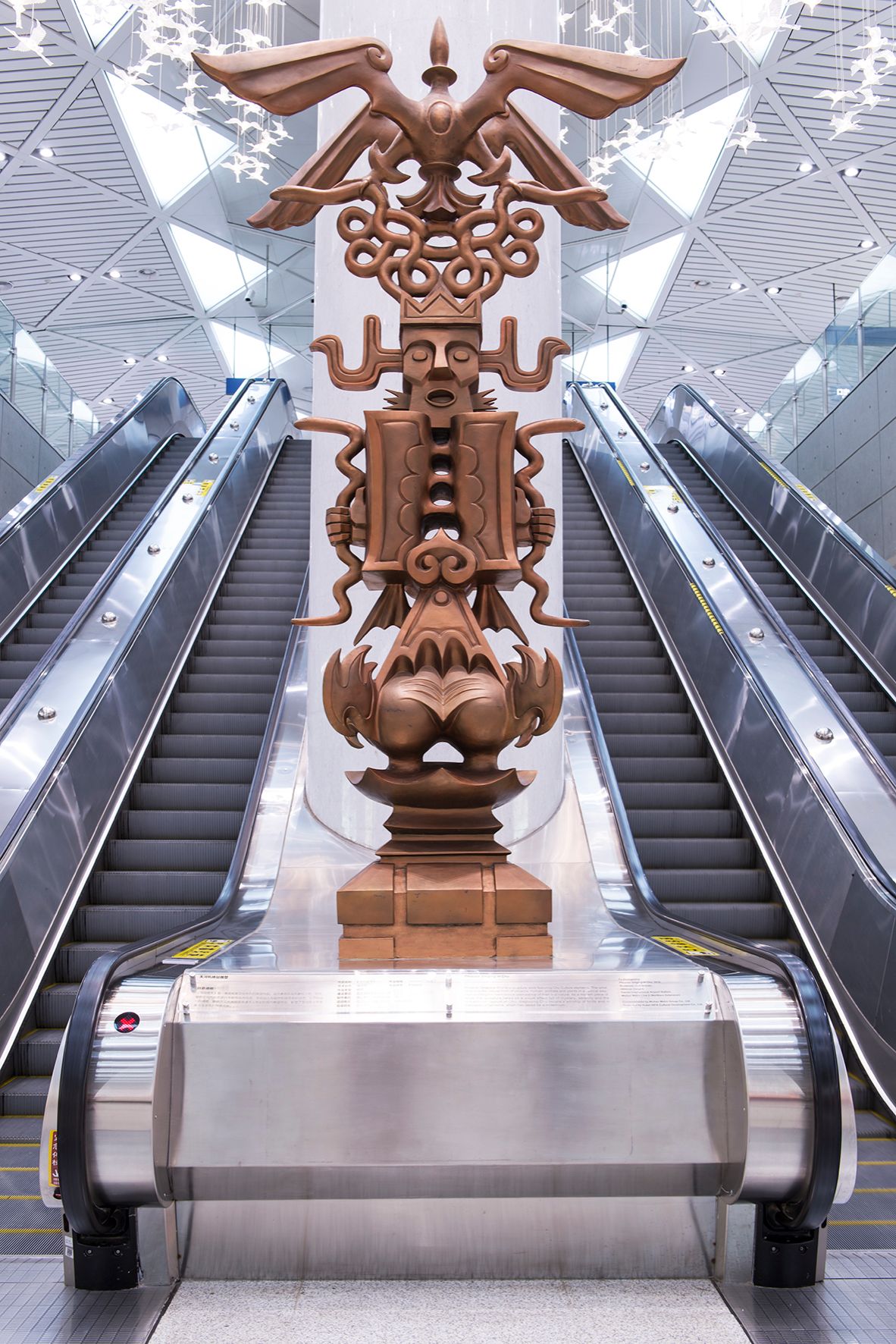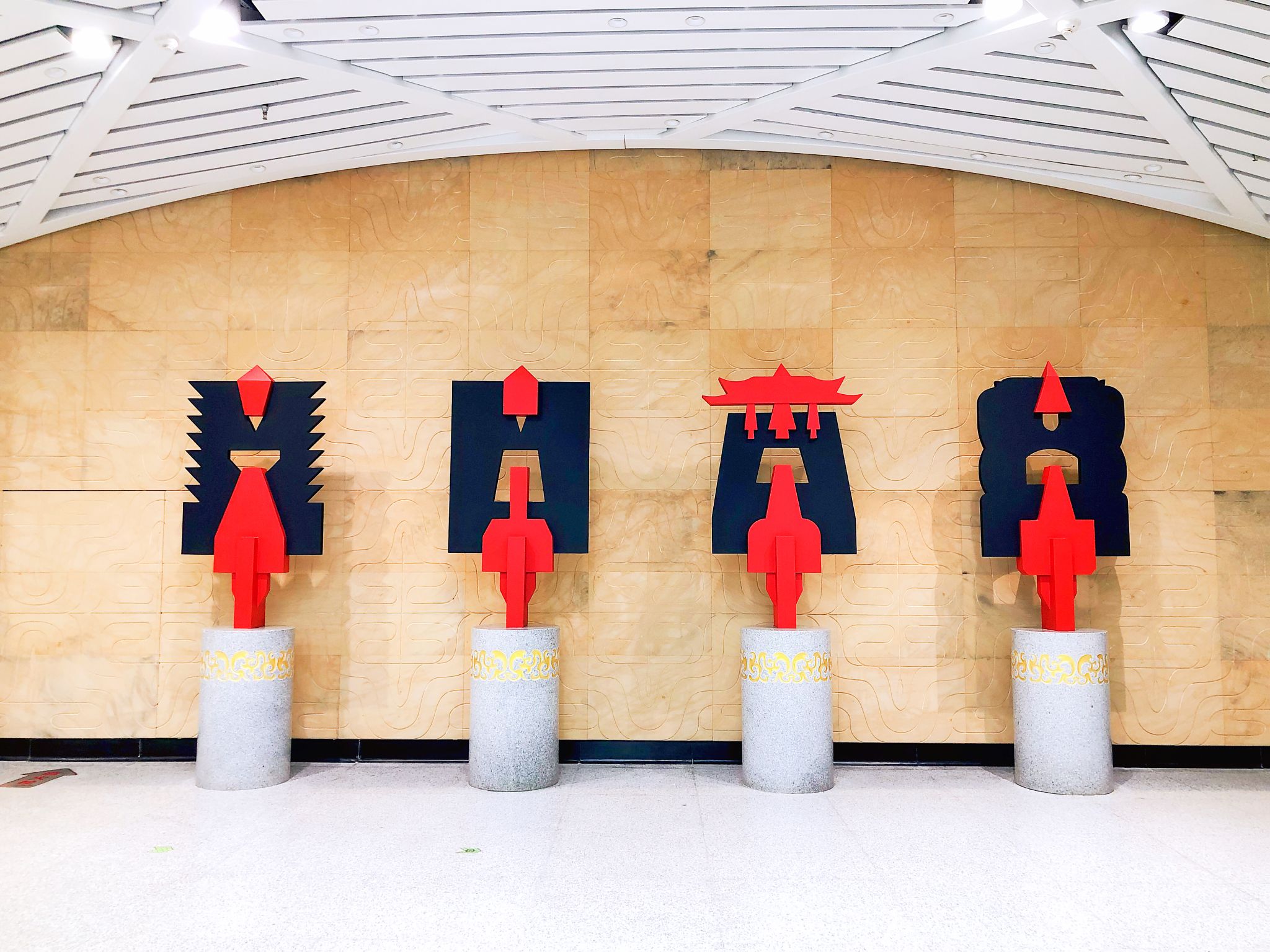 审美意味的抽象形态。设计者试图将历史悠久的楚国物象与当代艺术形式相融合,并以现代的造型语言展示在地铁公共空间里,从而引发观众对文化传承、艺术创新的审美思考,在时间与空间的切换中,在动观与静观的转换中,使人们穿越时空,对话历史,获得审美体验。